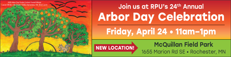 Rochester Public Utilities (RPU), ArborWise, Davey Tree, Rochester Parks & Recreation, and Sargent's Gardens proudly partner to host the Annual Arbor Day Celebration each year on the last Friday in April.